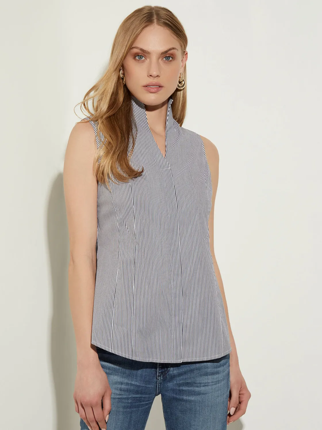 Misook Blouses & Shirts|Tops & Tees|Pinstripe Sleeveless Stretch Cotton Blouse,