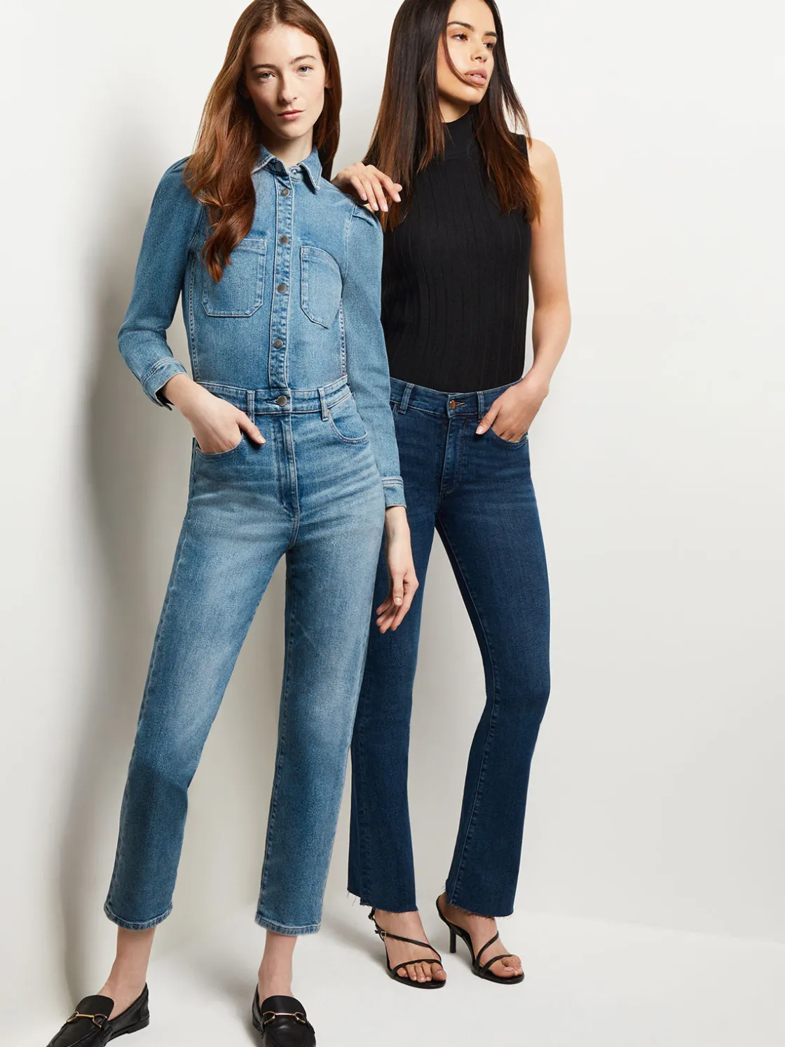 Simplify the casual-chic denim look with our effortless Freja Denim Jumpsuit. This one-piece wardrobe staple makes getting ready an easy affair. The Aged-Mid wash has a vintage-inspired look that feels like a worn-in favorite. This full-body jumpsuit contours and sculpts with the help of premium stretch technology and certified cotton construction. This piece looks great with minimal jewelry and simple comfy flats to go for an effortless look.