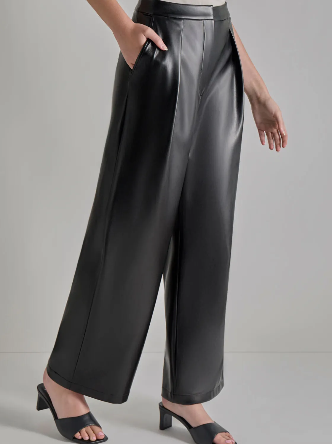 Misook Pants & Shorts|Pleated Straight Leg Vegan Leather Pants