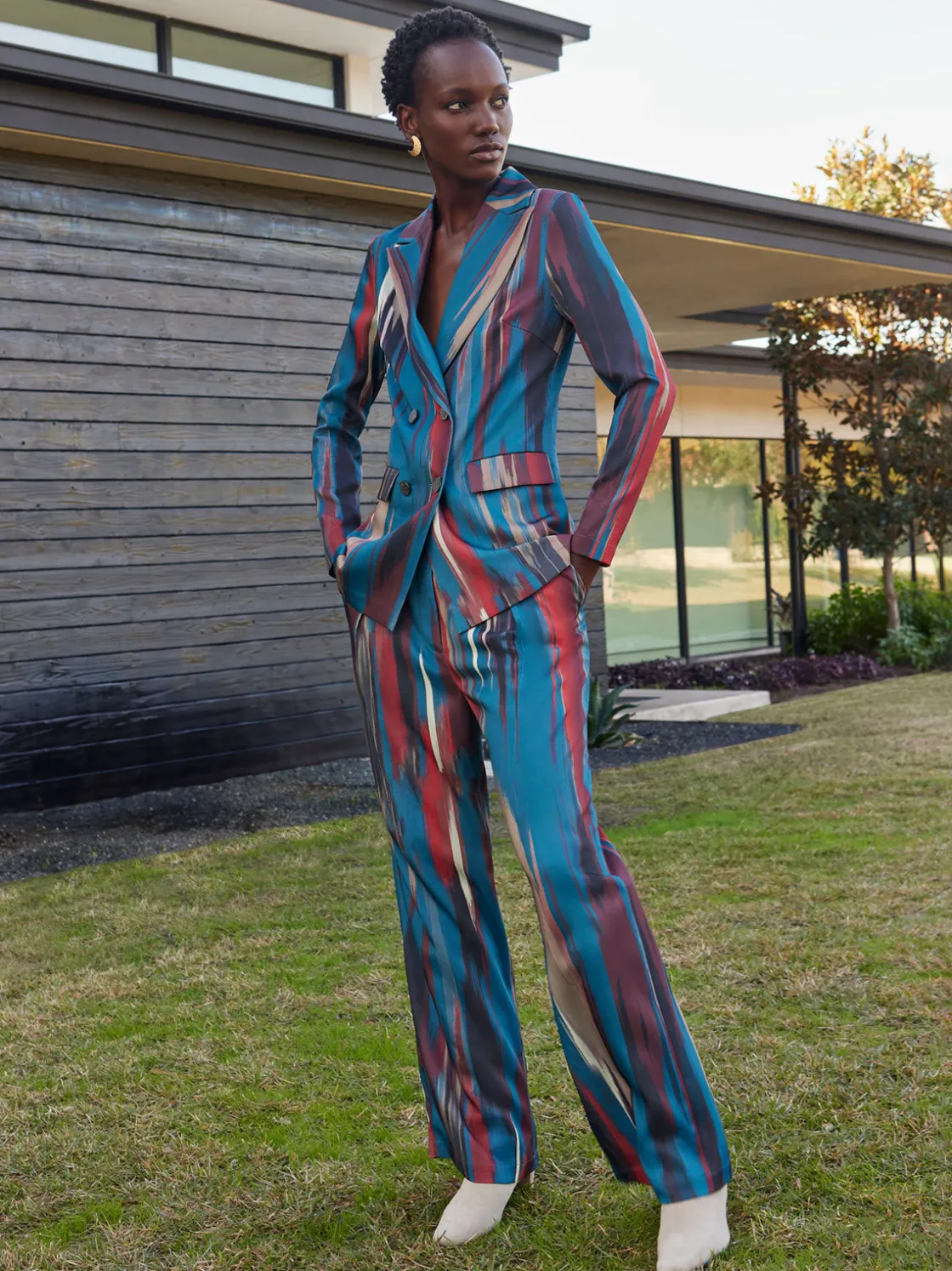 Our Brushstroke Pants feature a wide leg silhouette. These pants have a zipper fly with a hook-and-bar closure, as well as an elastic panel on the back of the waistband ensuring this garment fits comfortably. With the addition of functional inseam pockets, these pants are functional and stylish. Pair them back with the matching blazer to complete the look.