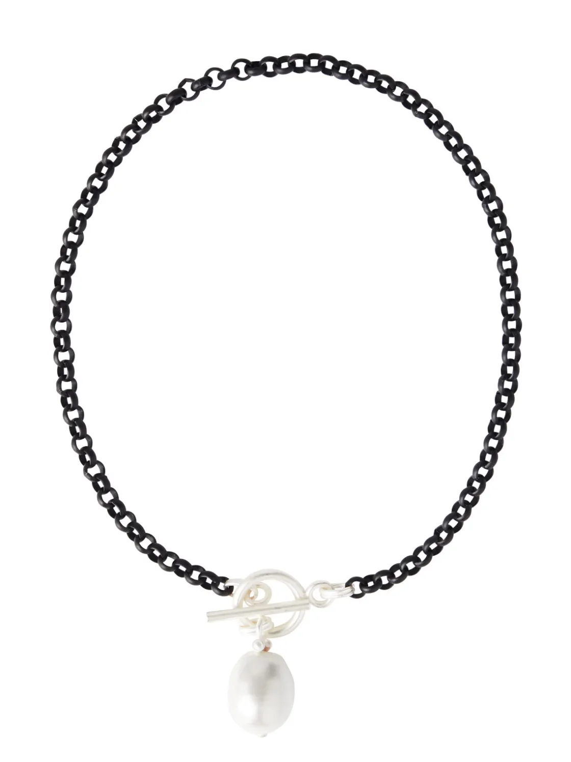 Misook Accessories|Necklaces|Handmade Black Rolo Link Toggle Necklace with Cotton Pearl Pendant